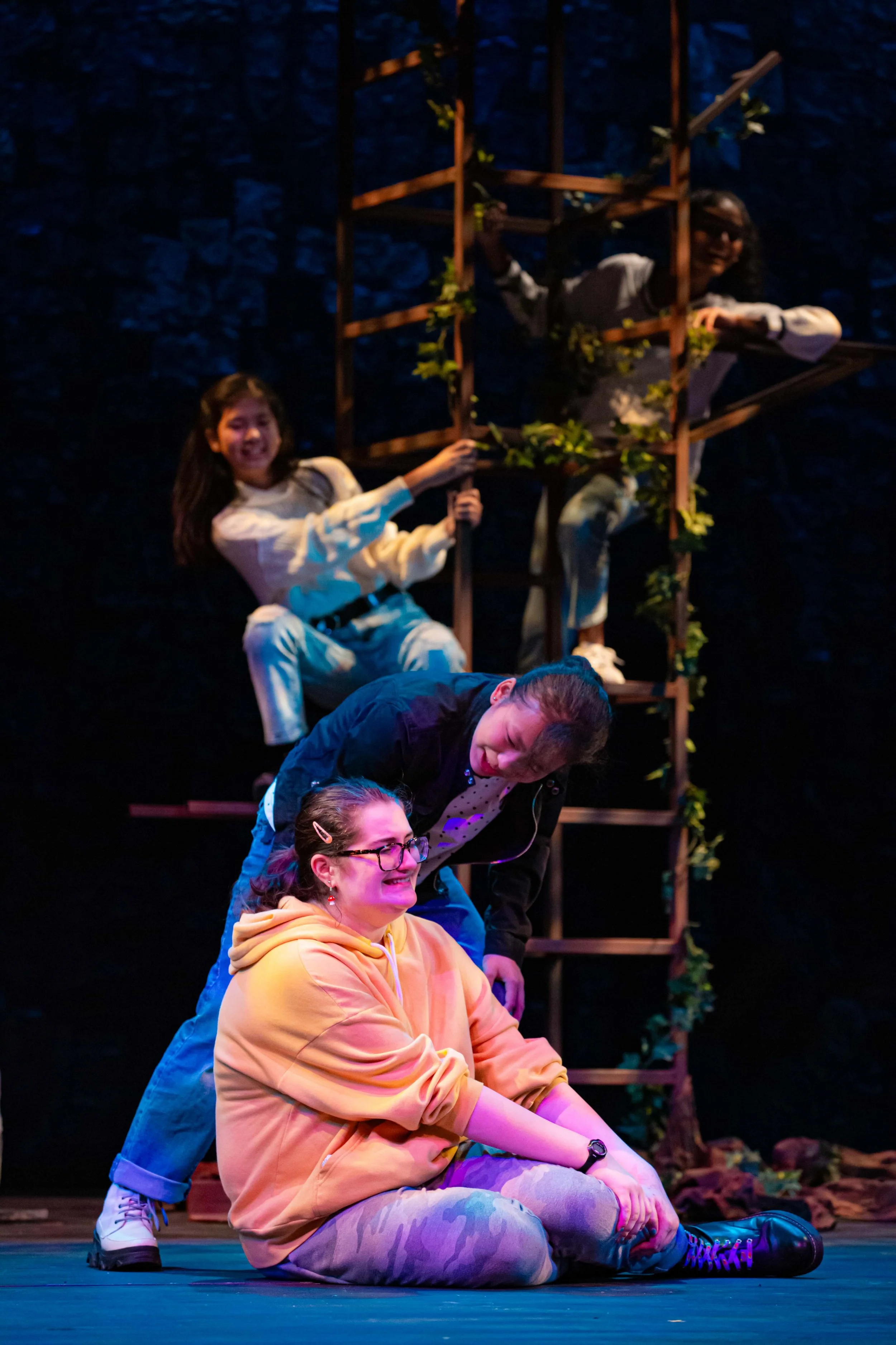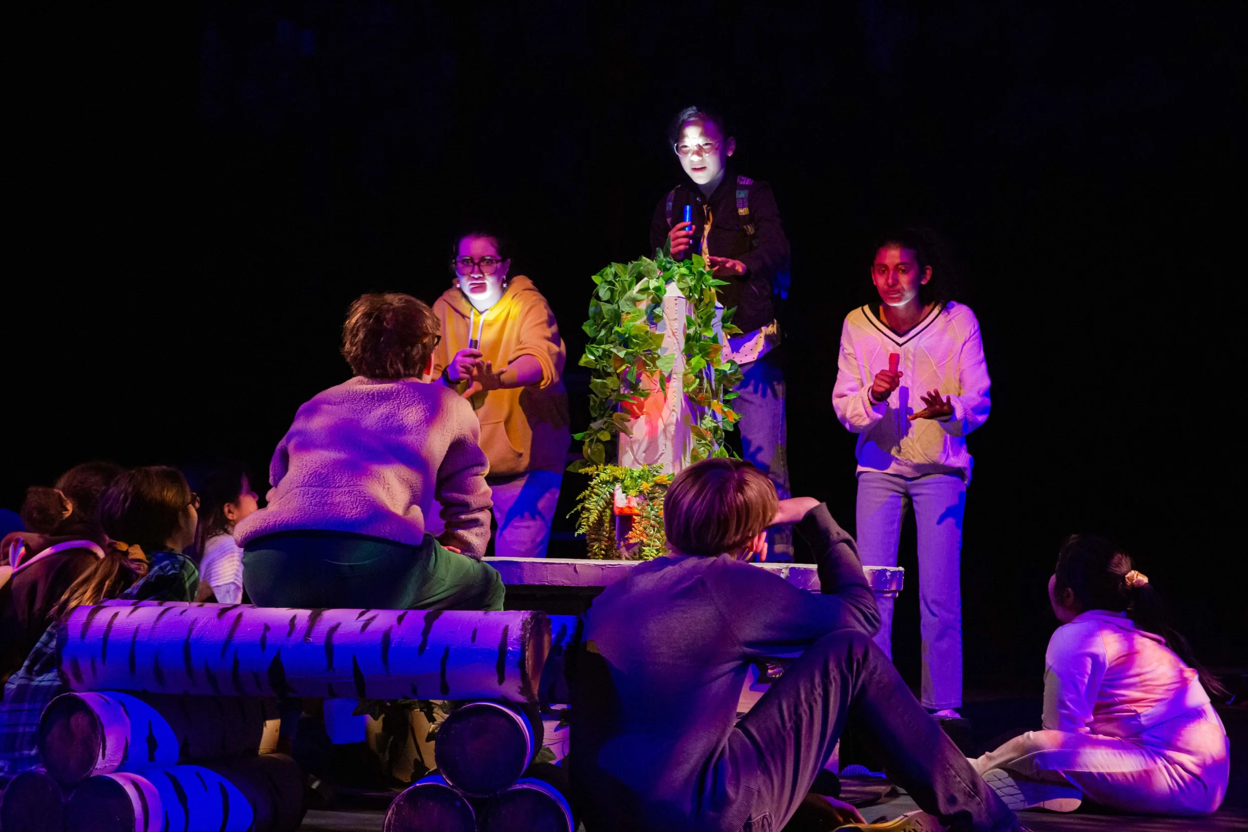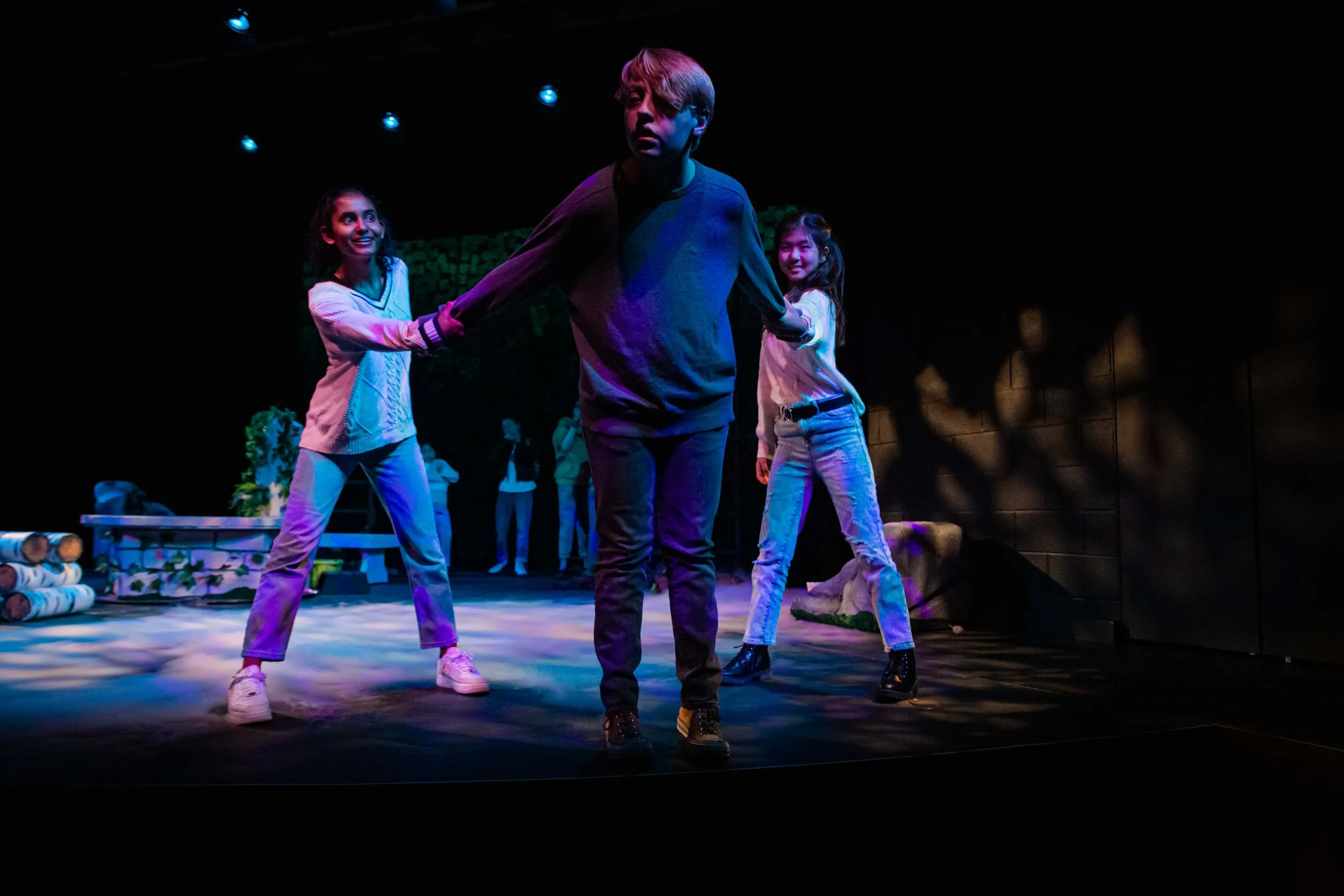 The 2020 pandemic leaves the Alden with a partially constructed set still sitting on the stage from our (unfinished) production of “Dorothy Meets Alice.” I am commissioned to devise a new piece from the leftover materials (creepy metal tree structures and a lot of wood). The resulting play is a take on the “Haunted Ski Lodge” ghost story, told by a group of friends as a dare to scare the bravest among them. The tale ends up so scary, the poor kid almost has an “accident” of his own.